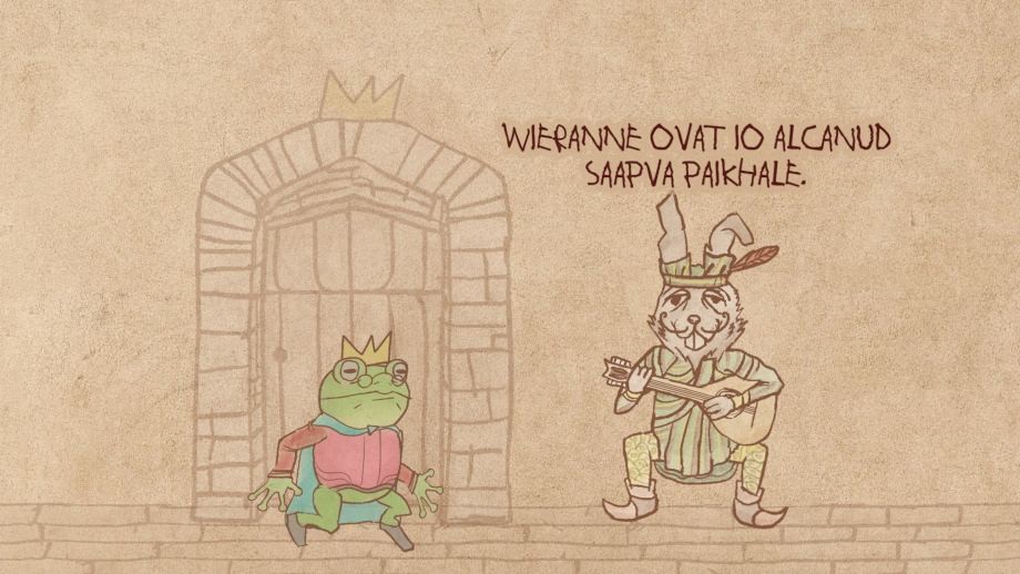 Etene dialogissa välilyönnillä, tai hiirtä klikkaamalla.
